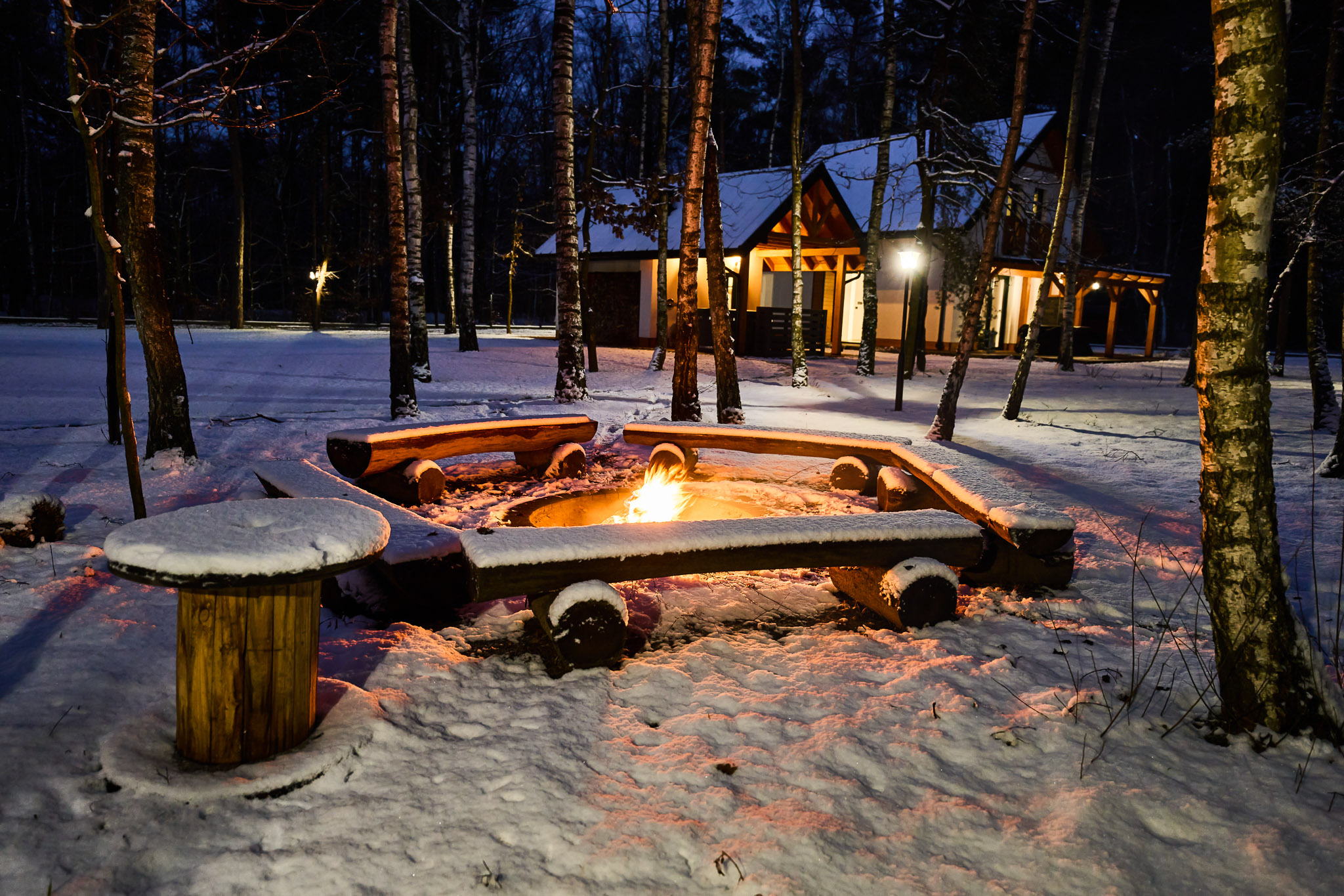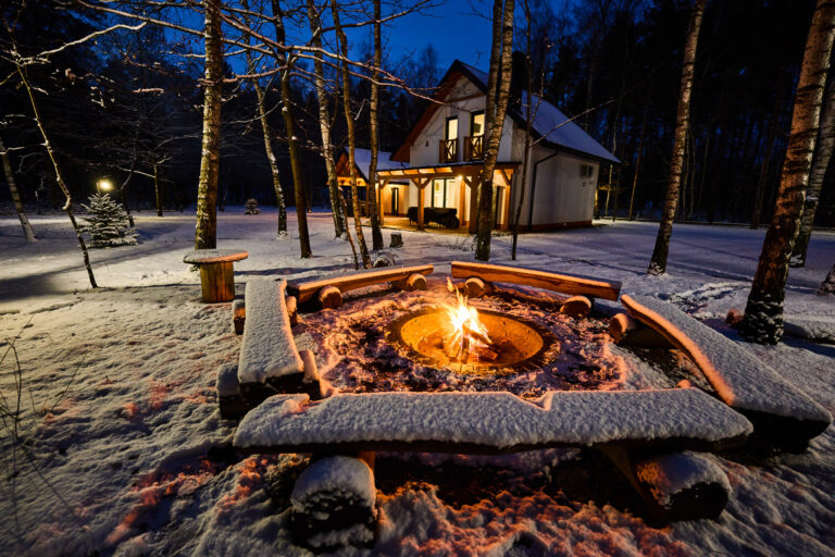 Wieczór przy ognisku, magiczna atmosfera, ciepło płomieni i niezapomniane chwile w sercu natury, tuż obok naszych domków.