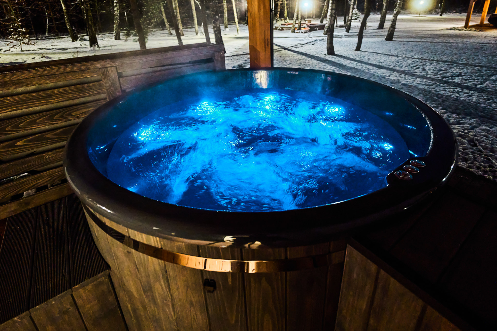 Po dniu pełnym aktywności na świeżym powietrzu, odpręż się w gorących, parujących wodach bani, podziwiając piękno okolicznej przyrody.